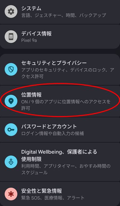 2.画面を下へスクロールして「位置情報」をタップします。