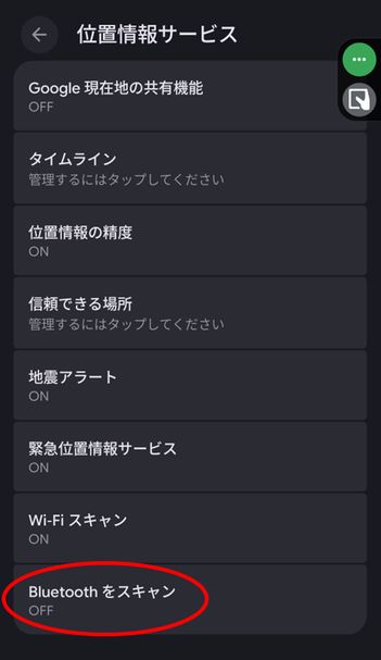 【対処方法】「Bluetoothスキャン」をオフにする。