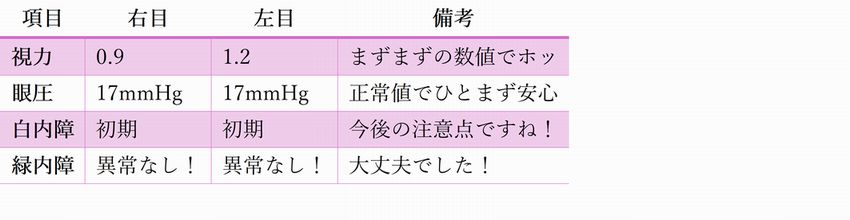 そして、一番気になる診察の結果を、表にまとめてみました。